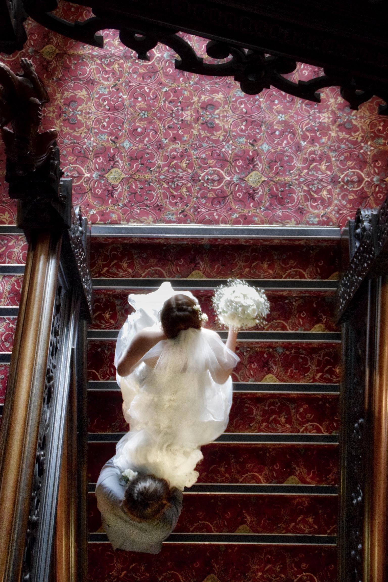 Posted on July 16, 2017March 15, 2021 by alscottphotographer Vicki and her brother walk upstairs to get ready for the ceremony.
